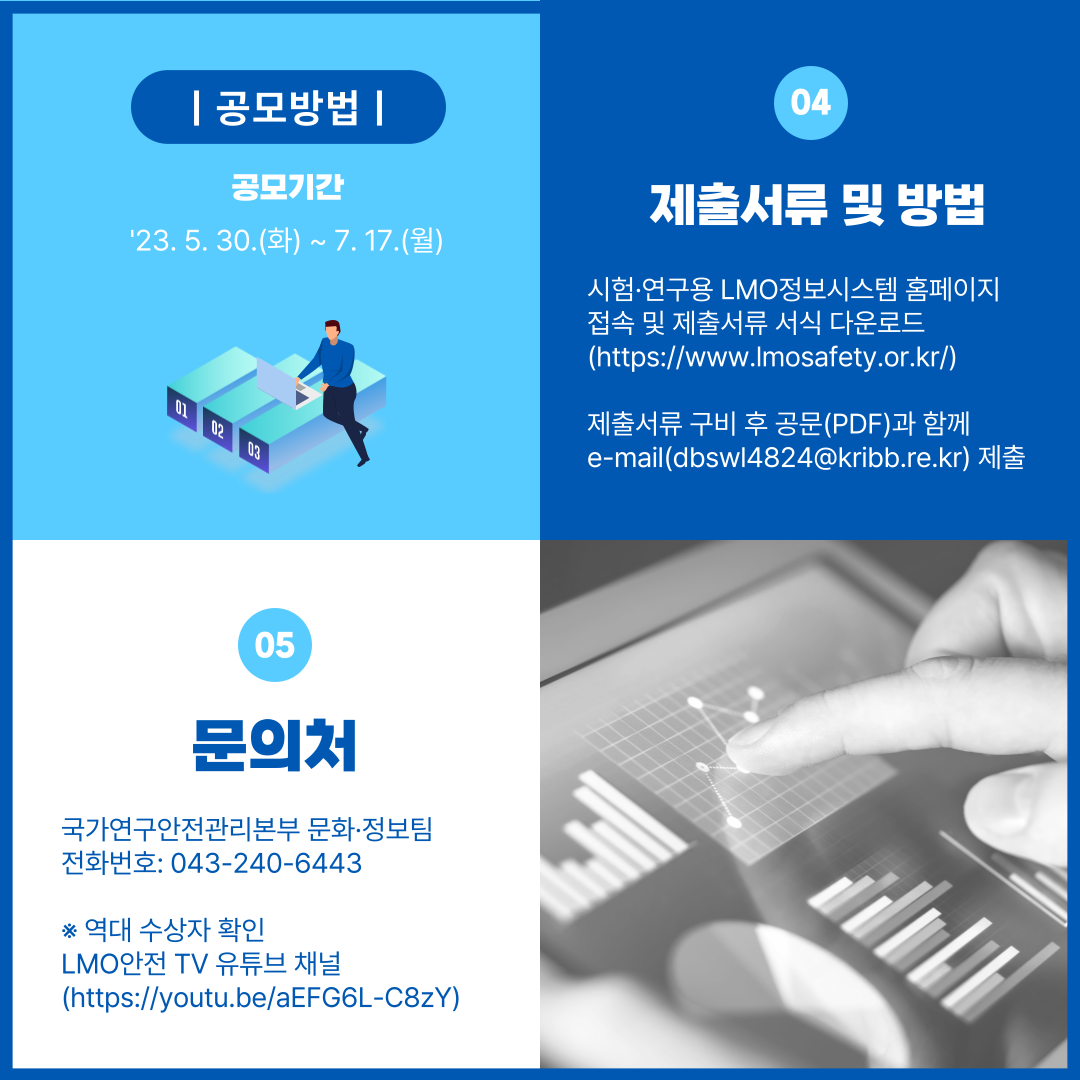 | 과학기술정보통신부 / 제5회 시험연구용 유전자변형생물체 안전 유공자 표창 계획, 7월 17일 접수마감! (1) | 2023.06.27 |