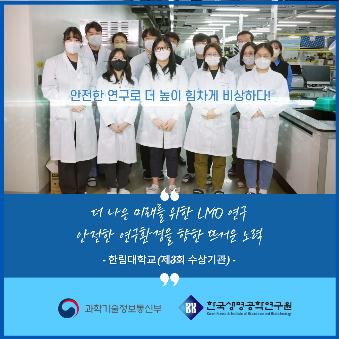 이런 시상을 통해 유전자변형생물체 관계자분들이 힘을 내시고, 또 주변 사람들이 안전 관리에 대한 인식을 제고하는 기회가 되었으면 하는 바람입니다.