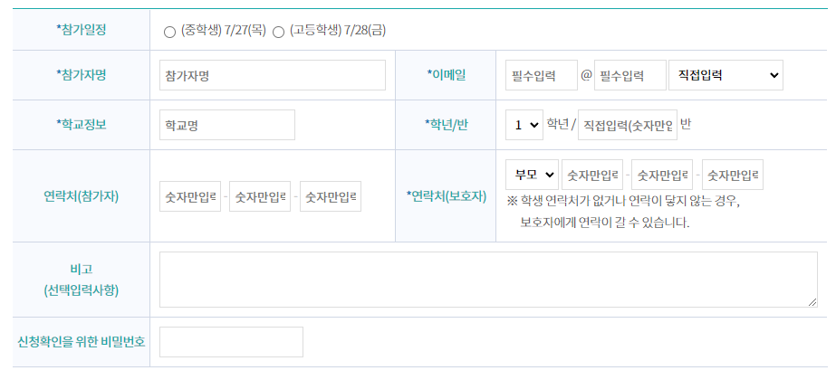 교육 대상은 전국의 중/고등학생 각 30명 내외이며, 선착순 선정이기 때문에 신청 기간이 남았더라도 미리미리서두르시는 게 좋겠습니다.