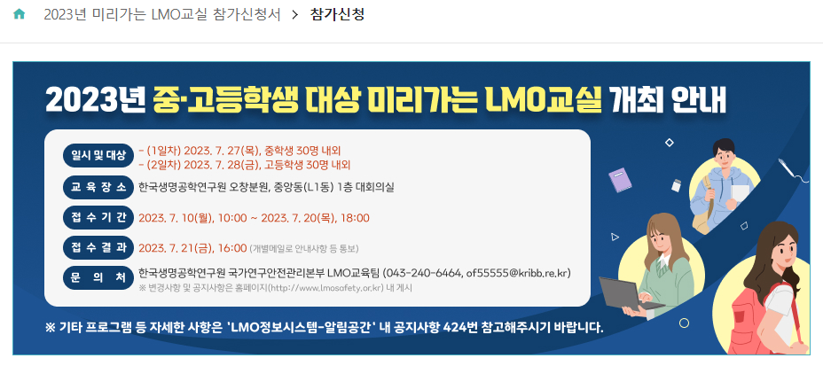 국가연구안전관리본부에서는 과학기술 관련 진학을 희망하는 청소년을 대상으로 '미리가는 LMO교실' 사업을 운영하고 있습니다.