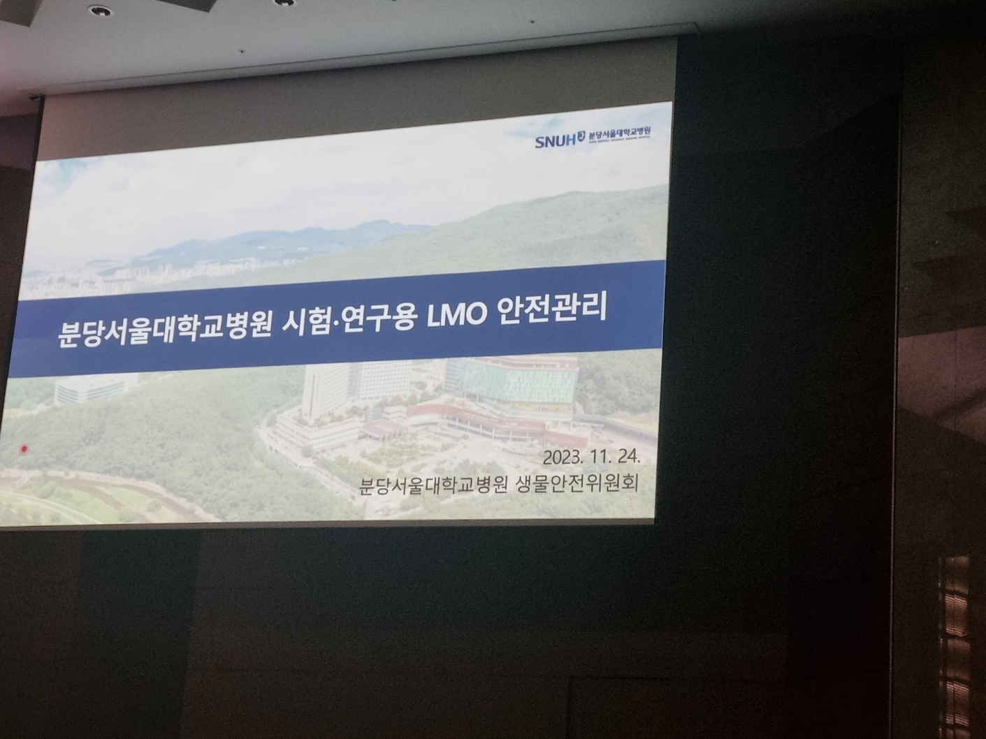 그리고 1부 순서의 마지막으로 분당서울대학교병원 황지연 박사님께서 시험·연구용 LMO 안전관리에 대해 발표해 주셨습니다.