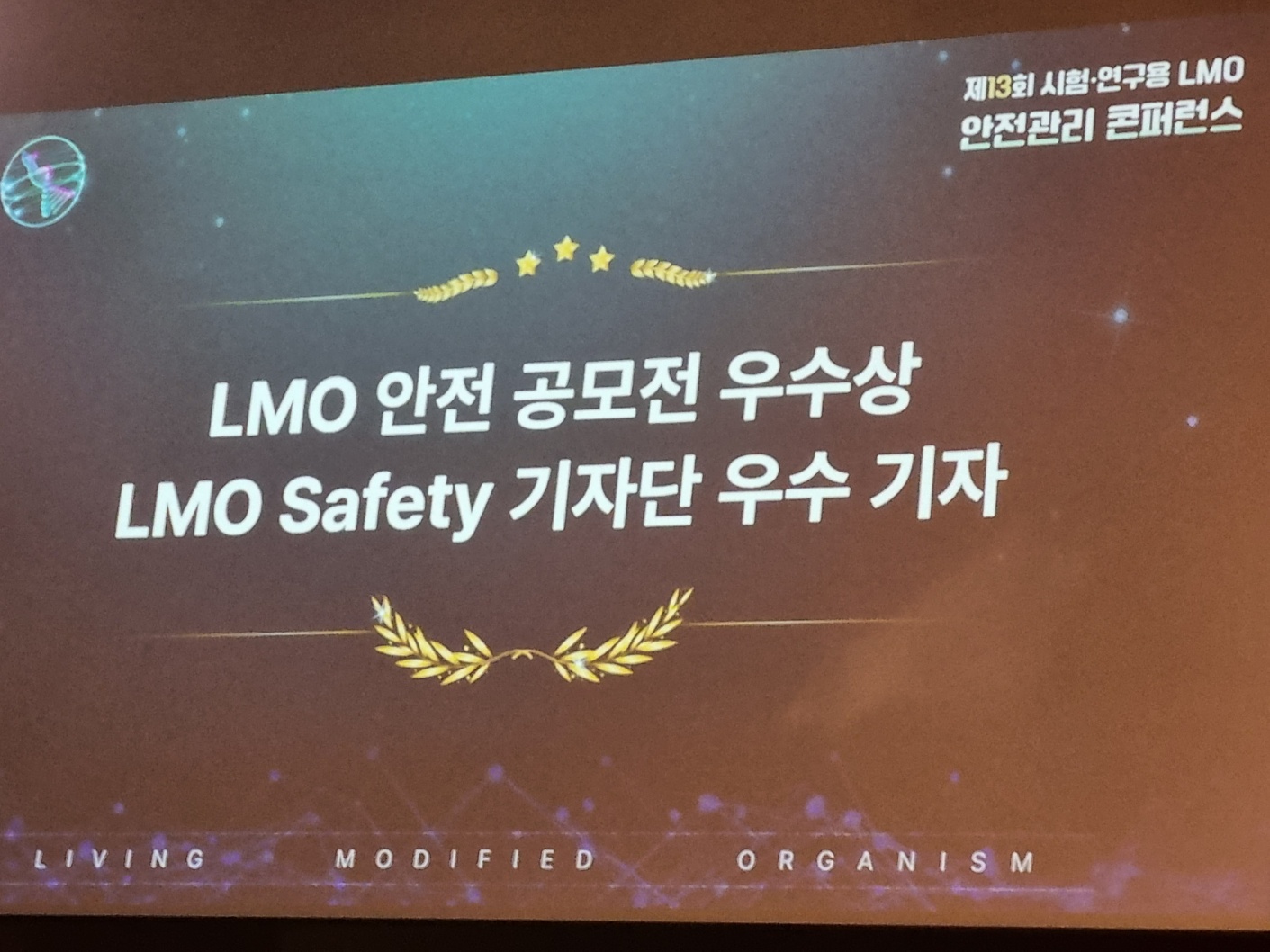 시상식은 서울 양재역 바로 앞에 있는 EL타워 7층 그랜드홀에서 이뤄졌는데요, 그날은 바로 제13회 시험·연구용 유전자변형생물체(LMO) 안전관리 콘퍼런스가 개최일이었습니다.